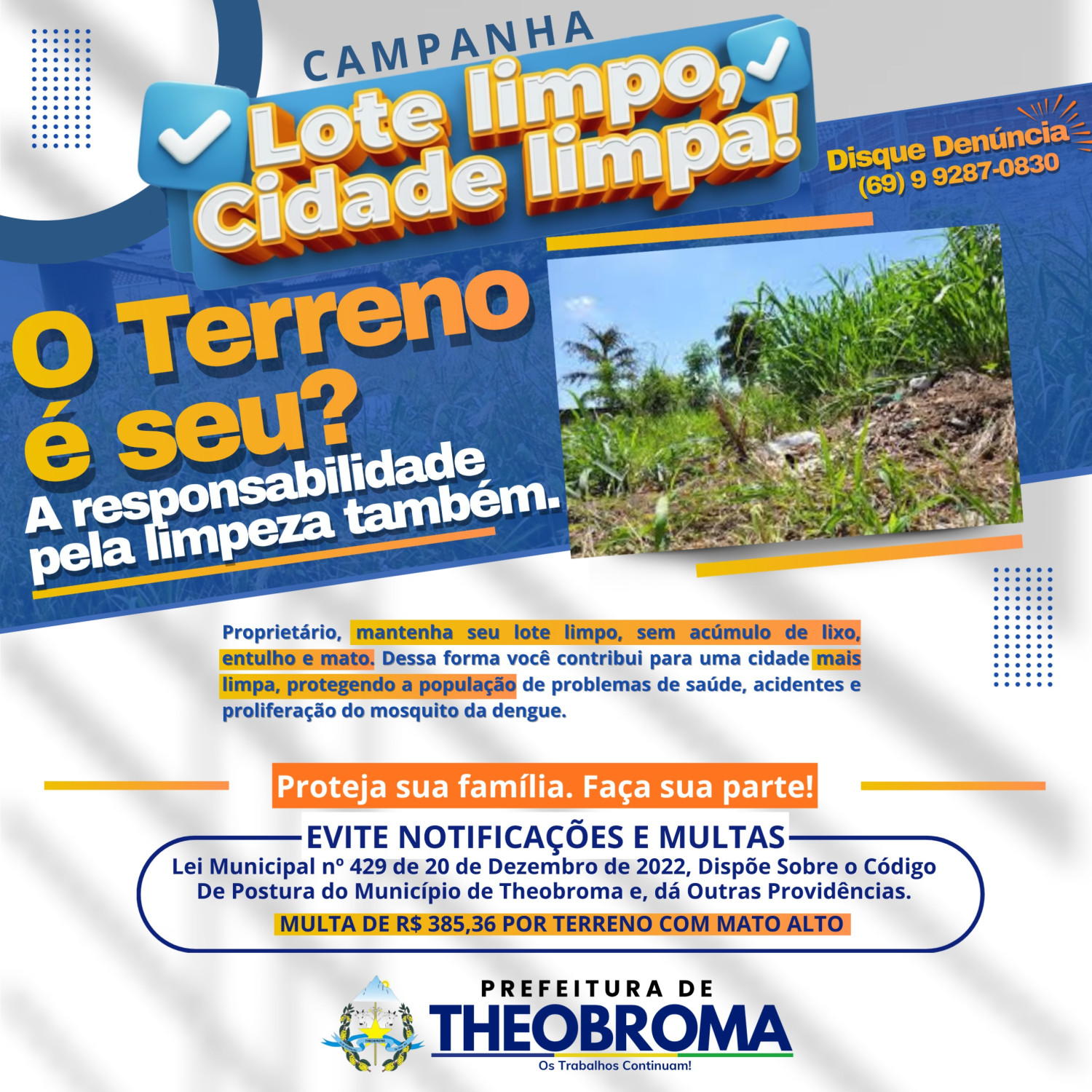 A Prefeitura de Theobroma deu início à campanha “Lote Limpo, Cidade Limpa”.