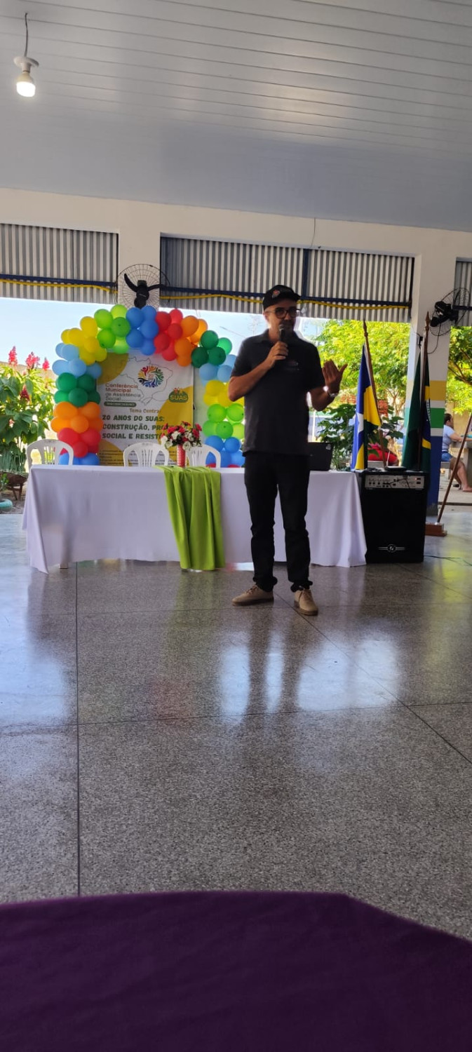 A programação contou, logo após a abertura oficial, com a palestra magna ministrada por Paulo Henrique, Secretário Municipal de Assistência Social de Machadinho d’Oeste. Com grande sensibilidade e clareza, o palestrante compartilhou experiências bem-sucedidas da gestão socioassistencial em seu município, abordando os desafios enfrentados e os avanços conquistados ao longo dos 20 anos do SUAS. Sua participação foi extremamente proveitosa, motivando os participantes a refletirem sobre novas estratégias de atuação e inspirando os debates que se seguiriam.